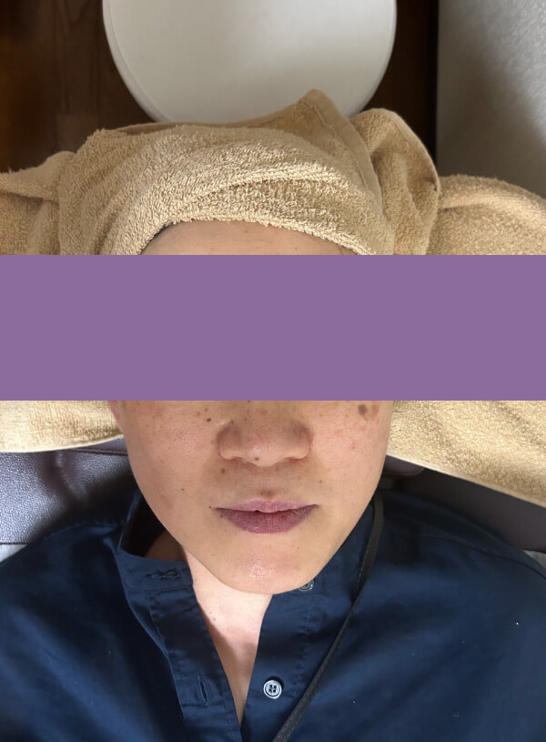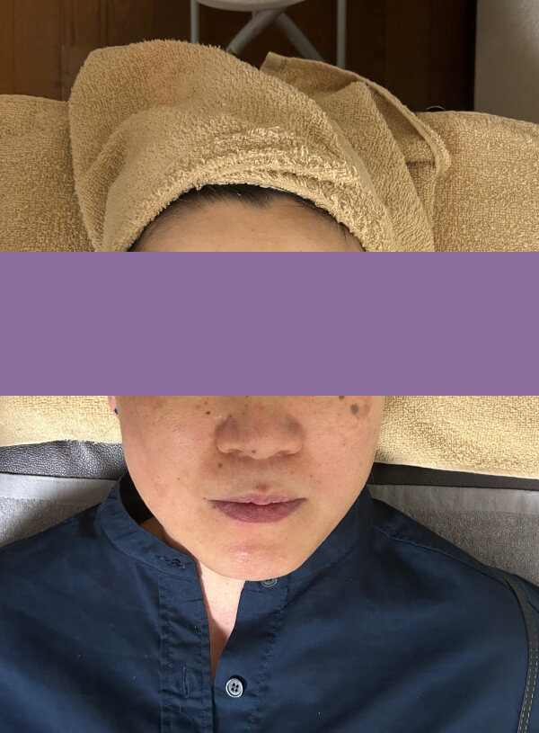 「誰かにメイクを落としてもらうってめちゃくちゃ気持ちいい!肌のくすみが取れて、顔の輪郭スッキリ♪もっちり♪しっとり♪絶対また来ます!」と、嬉しいご感想が。写真では特にフェイスラインがスッキリしたのを感じていただけるかと思います。