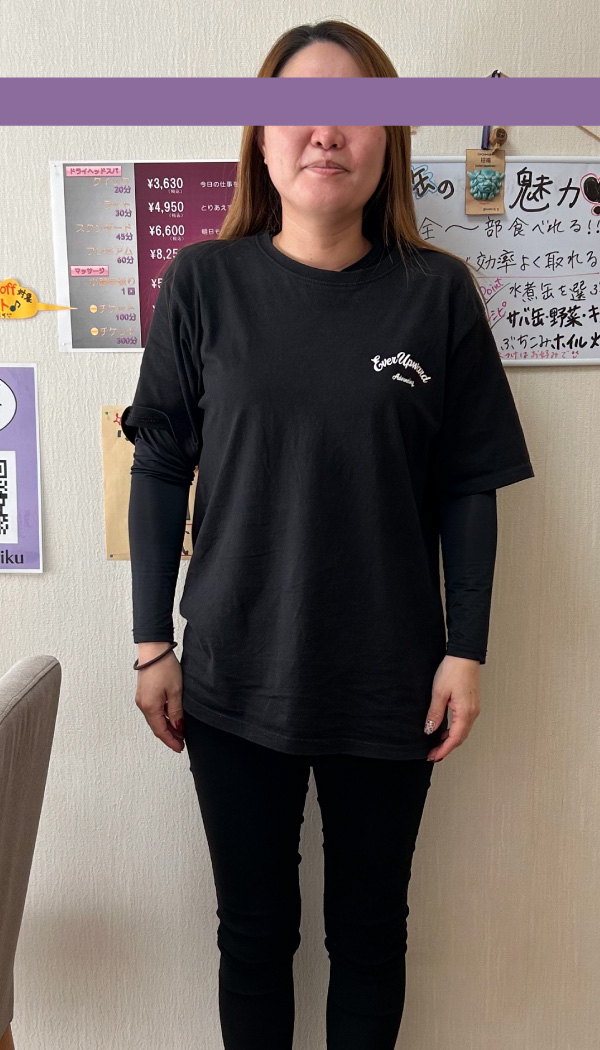 現在、20分・30分のコースを月に2回程、通っていただき、生理痛がラクになってきたこと、二日酔いがすごく軽くなったとご好評頂いております。